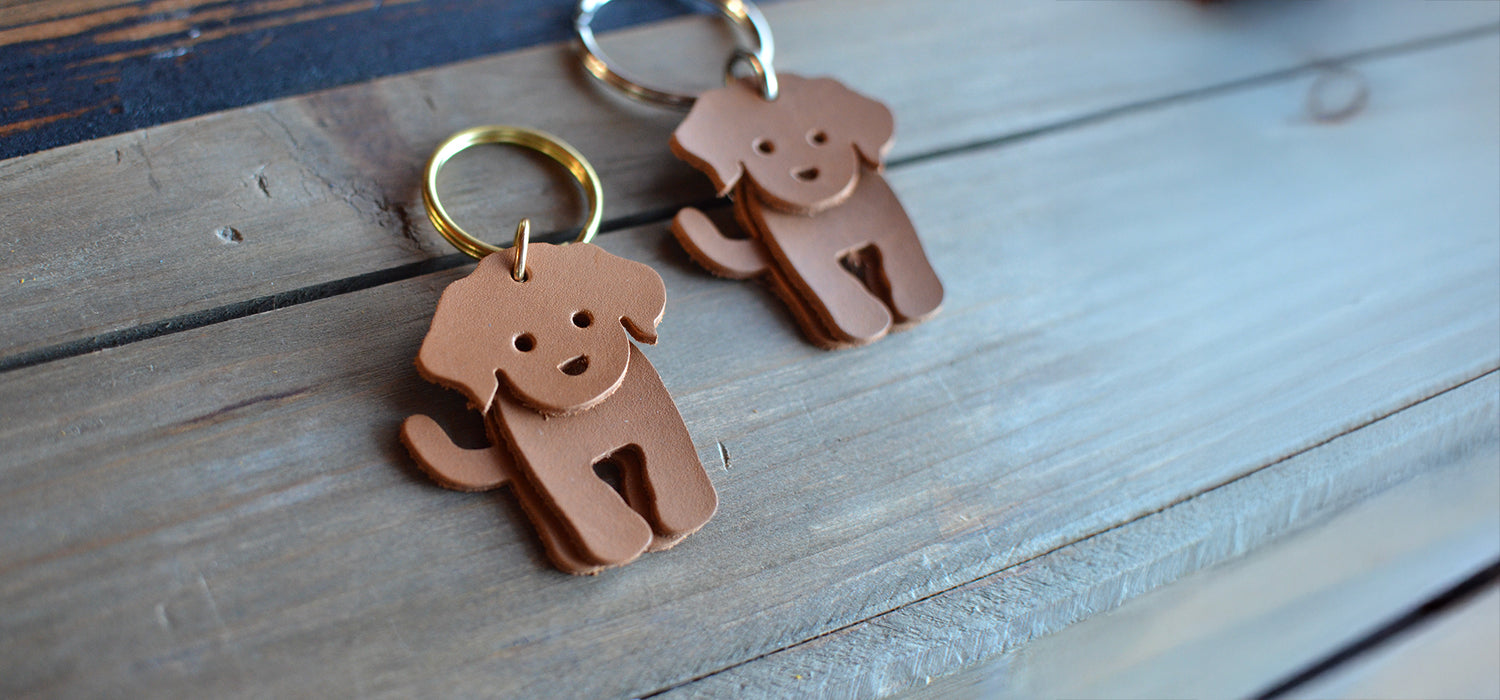 Classic Dog Leather Keychain - Solid Smooth Leather